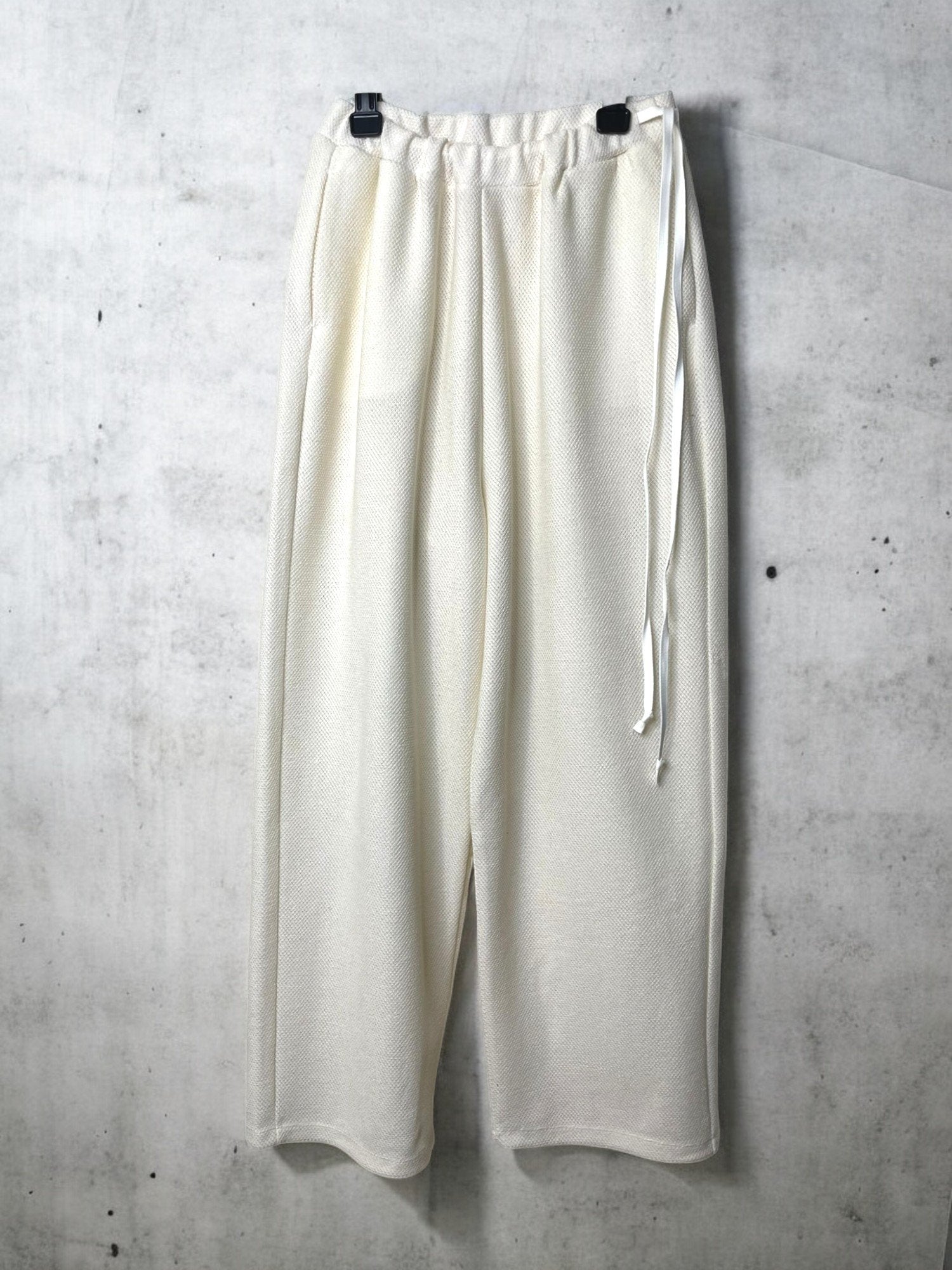 ゆったりとしたルーズフィットに、アクセントのサイドストリング、軽やかな生地ながらもシルエットを美しく整える。今大人気のパンツです。